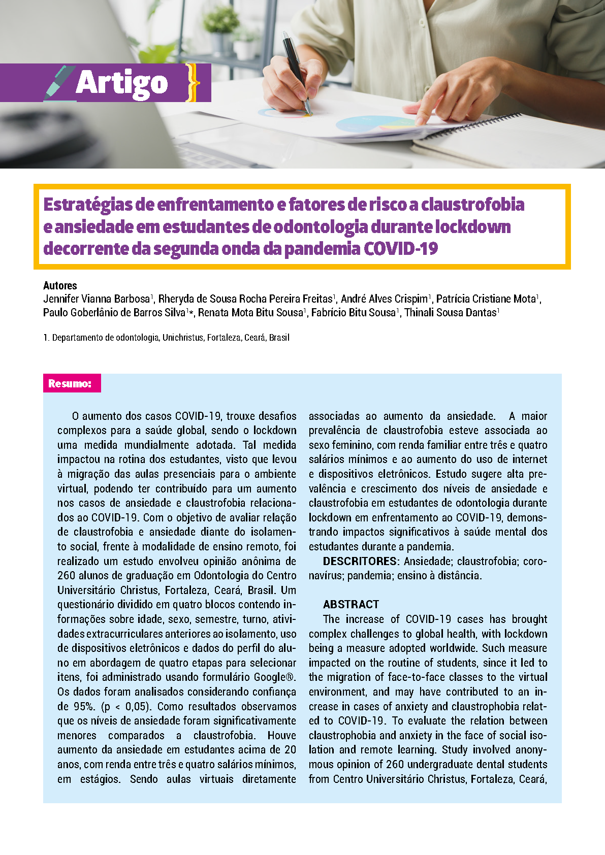 A Revista do CRO-CE é uma publicação do Conselho Regional de Odontologia do Ceará, com periodicidade semestral. As matérias assinadas não refletem, necessariamente, a opinião da entidade.